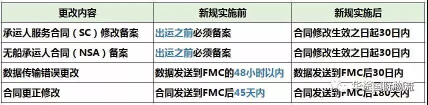 現(xiàn)在改到合同生效30日起,就給了船公司極大的自由度,可以把一個(gè)月內(nèi)多次的修改一次性備案。簡單的理解,本月的合約更改,不論多少次,都可以在本月的月底一次性發(fā)送給FMC就可以符合監(jiān)管規(guī)定了。
